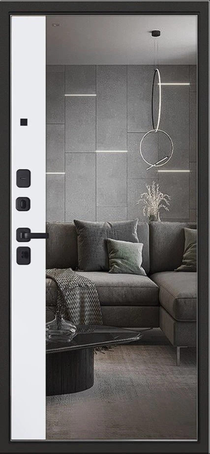 Надежная входная Дверь Scandi с зеркалом премиум класса по цене 45 560 руб. Большая толщина стали защитит от проникновения в ваш дом, квартиру или коттедж. Используется очень качественная фурнитура: замки, цилиндры, ручки, защелки. Покрытие и отделка двери изготовлено под внимательным контролем производителя. Дверь имеет долгий срок службы и гарантию.