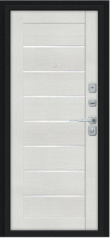 Дверь Браво Техно/BChrome Букле черное/Bianco Melinga - недорогая эконом класса по цене 4 760 руб., отлично подходит для временной установки в квартиру под сдачу, строительство, ремонт. Не смотря стоимость, модель хорошего качества.